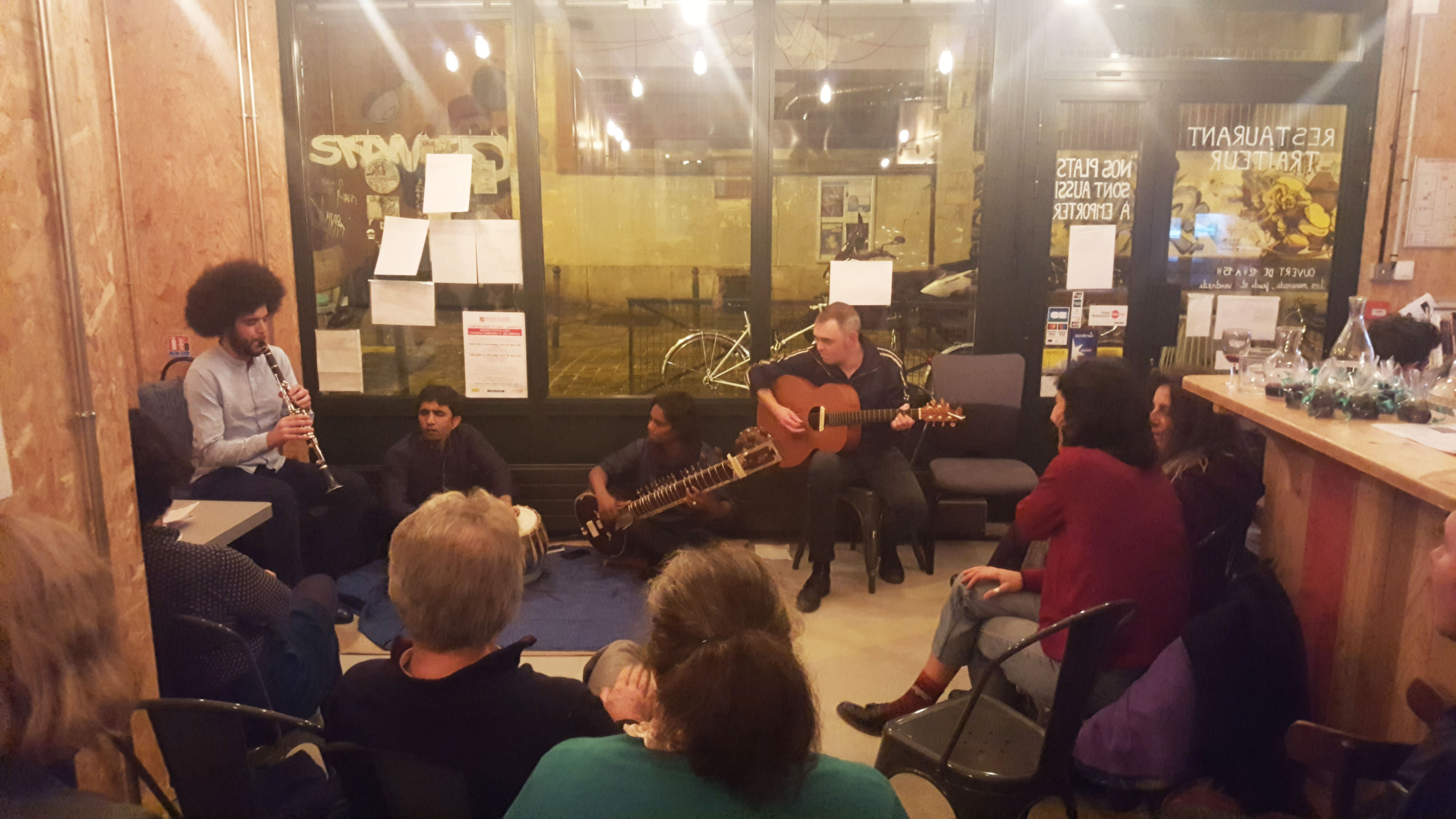 Soirée au CIP20 ! C’est dans une ambiance intimiste que ce vendredi 23 novembre, nous avons partagé un repas inspiré des « Cantines du monde » autour d’un plat typique des Comores, le pilao, et autres gourmandises préparés par des femmes du quartier Belleville Amandiers, avec un public attentif à la musique indienne qui était jouée en direct au CIP20.